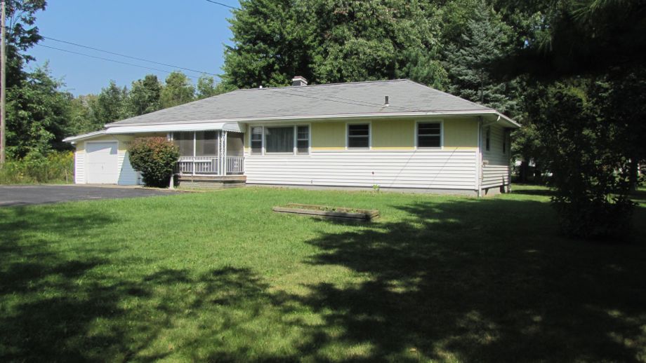 Convenient Location and One-Floor Living! This is an opportunity to own a well-built Three Bedroom Ranch home in Macedonia close to shopping and highways. The front porch leads into the spacious Living Room. Enjoy beautiful Hardwood floors in the Living Room, all 3 Bedrooms and the hallway. The Open Kitchen steps down to a large Family Room with a beamed ceiling, Raised Hearth Brick Fireplace and sliders to the patio and wooded back yard. The Full hall bathroom has built-in counters and ample linen storage. The mud room opens from the attached two-car garage. The full basement offers a spacious workshop, a washer & dryer, laundry sink as well as a ceramic tiled shower. Move right in and make this your new home. Sold as- is by motivated sellers.
