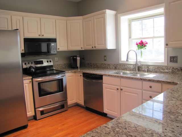 Sitting stoically on the corner in this very quiet neighborhood this home has much to offer. As you enter you will see the Open Floor Plan, the hardwood floors and the 4 skylights in the Great Room. the Great Room also has a fireplace and sliding glass door to the very private deck. The Kitchen has hardwood floor, granite counter, stainless sink and appliances and a granite pass through to the Dining area. All updated in 2012. The First Floor Master Suite has hardwood floor and the Master Bath has newer (’12) double vanity with granite tops, a soaking tub, private commode and large walk in closet. A half bath and first floor Laundry Room with direct access to the garage round out the first floor. The second floor includes a newly (’12) updated Bath with granite top. The lower level is finished into three rooms and perfect for so many activities. This home has been lovingly updated, all light fixtures and hardware have been replaced with newer (’12) throughout. Close to Historic Hudson.